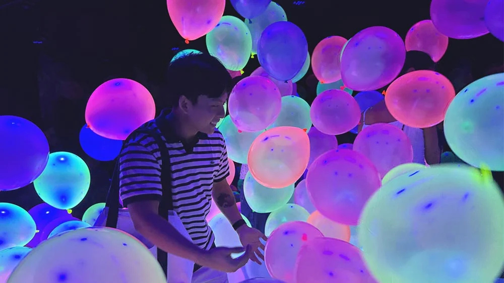 Kai: This one was pretty fun, pretty straightforward. Neon balloons everywhere, floating and bouncing in all directions, creating that chaotic, childlike joy that immersive experiences love to tap into.