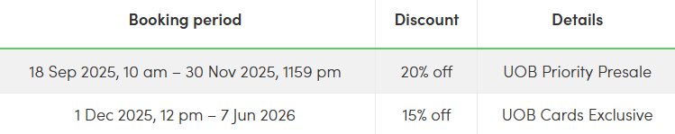 Secure your discounted tickets via Klook, Marina Bay Sands (MBS), or Sistic. Just use your UOB card at checkout.