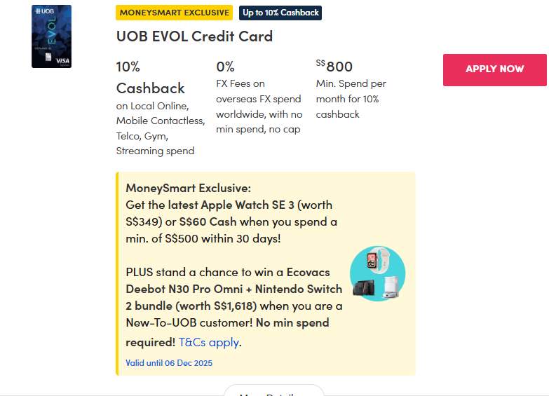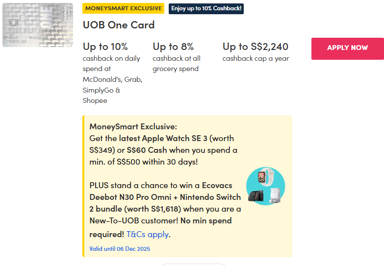 | DBS PayLah! | 10% cashback (max $4) with a minimum spend of $14 via PayLah! (until 31 Dec 2025) | varies |
